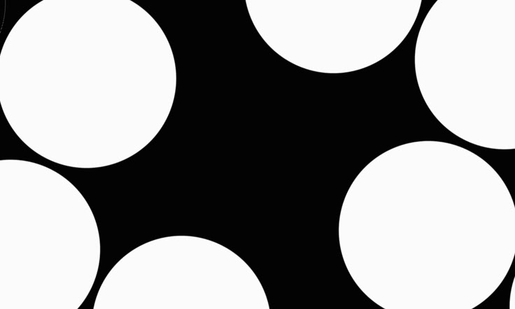 This image features a high-contrast, abstract composition of large, overlapping circles against a stark black background. The design relies heavily on negative space and the interplay between pure white shapes and deep black, creating a minimalist yet dynamic visual texture.
