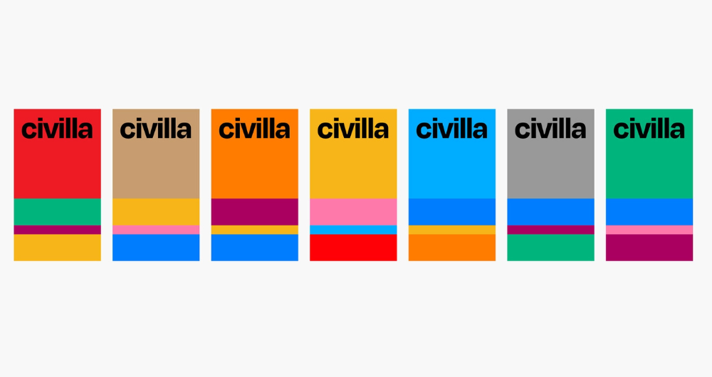 This design utilizes a modular, linear layout to showcase diverse color variations within uniform vertical bars. The visual language is bold and segmented, effectively communicating difference through distinct hues against a clean white background.