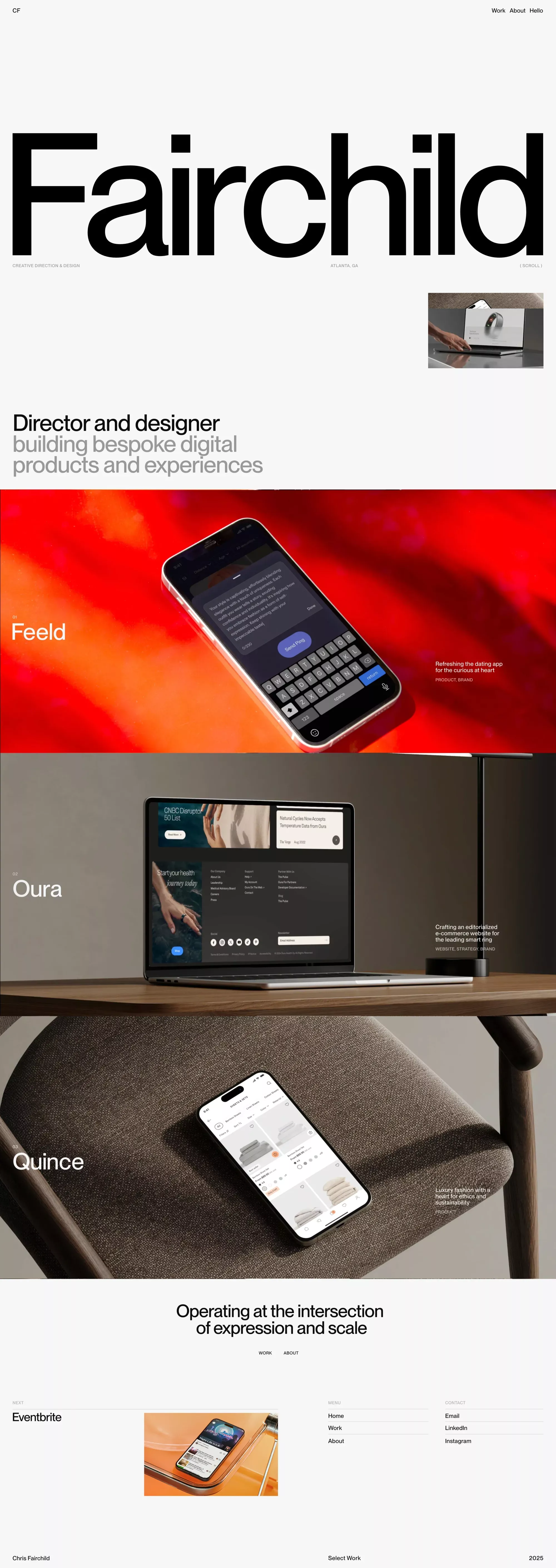 The design employs a stark, minimalist aesthetic characterized by high contrast between dark neutrals and warm, vibrant accents. The visual language is clean and corporate, emphasizing precision, modern functionality, and high-end digital product presentation.