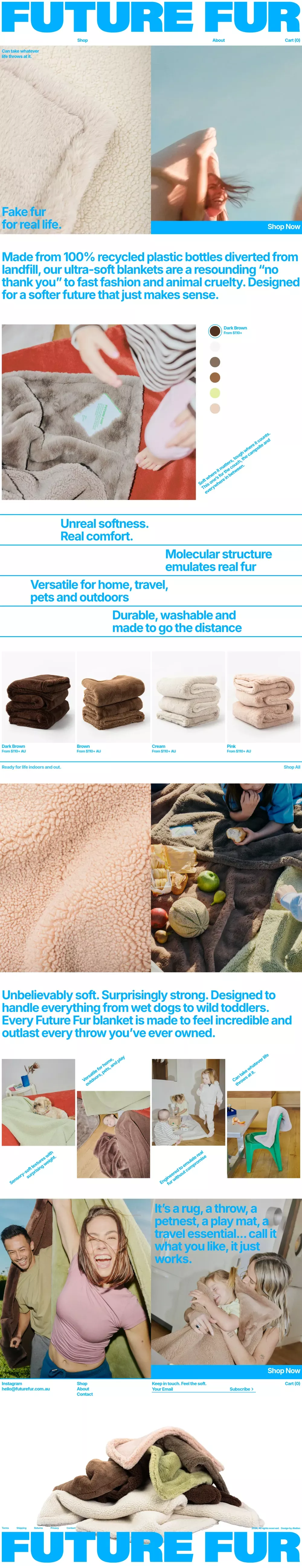 This visual collage emphasizes tactile softness and warmth through close-up shots of luxurious faux fur textiles. The design language is clean yet inviting, focusing heavily on the texture and comfort of the materials being advertised.