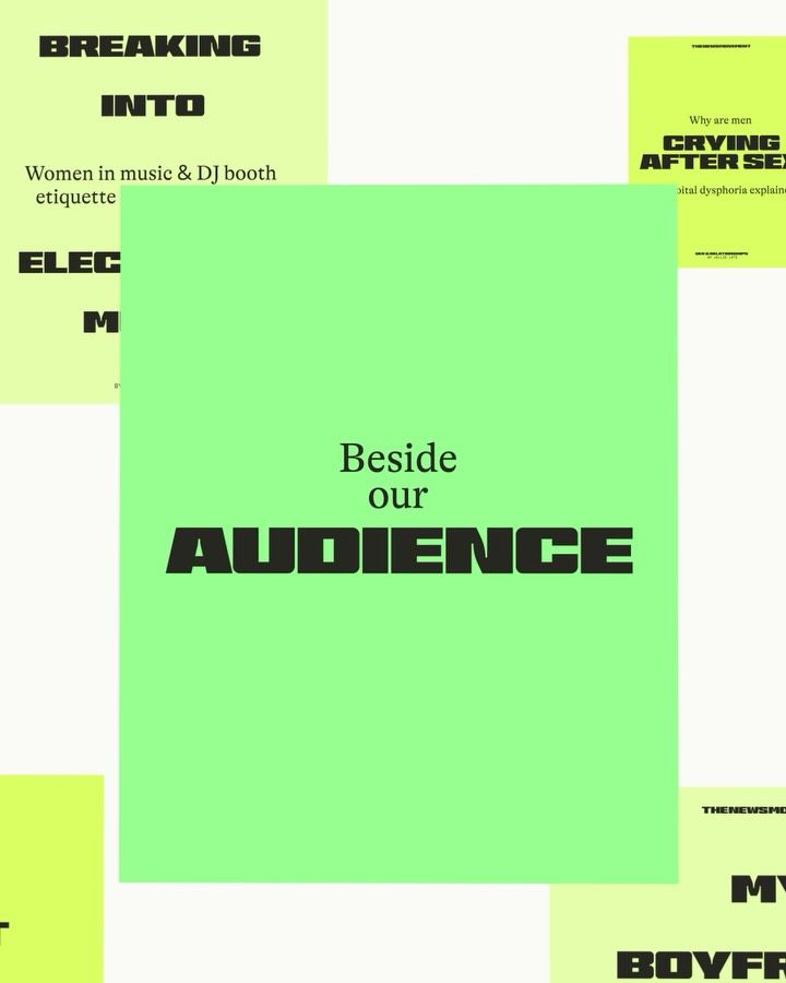 Bold typography design featuring neon green and yellow accents on dark background. Experimental text-based layout with dramatic color contrast and modern aesthetic.