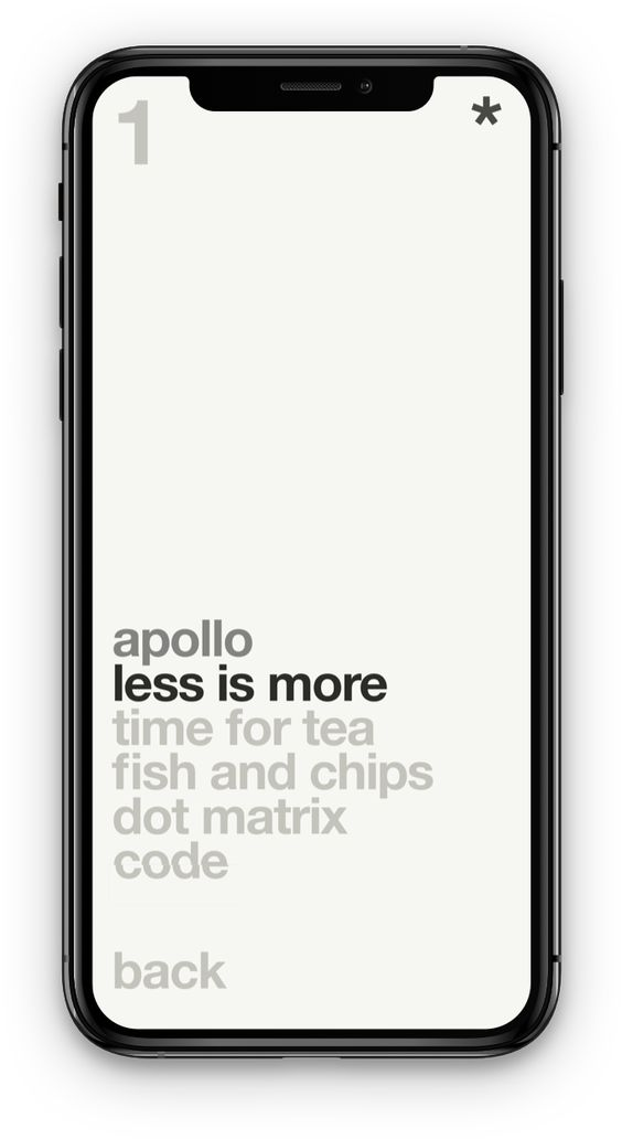 A minimalist mobile interface mockup featuring a clean, typography-focused design with a cream background and hierarchical text layout. The design demonstrates modern app UI principles with restrained use of color and emphasis on readable, organized information architecture.
