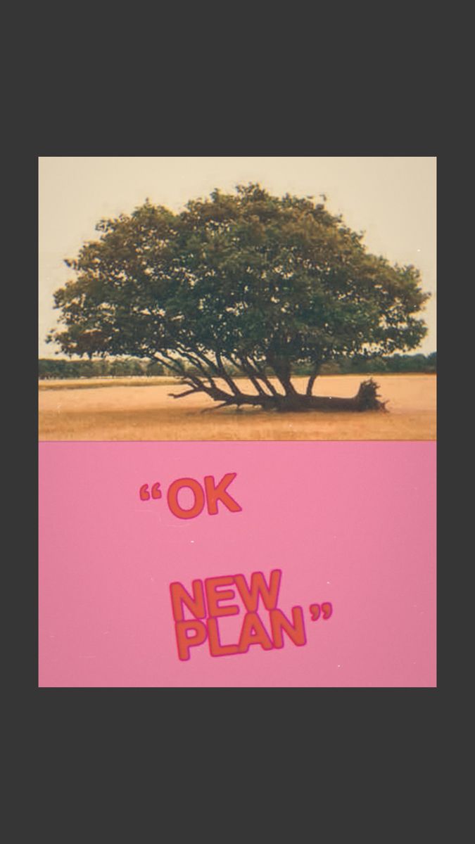 A contemporary collage-style poster combining a serene landscape photograph with bold typographic elements on a vibrant pink background. The design juxtaposes natural imagery with playful, modern text to create an ironic or motivational statement.