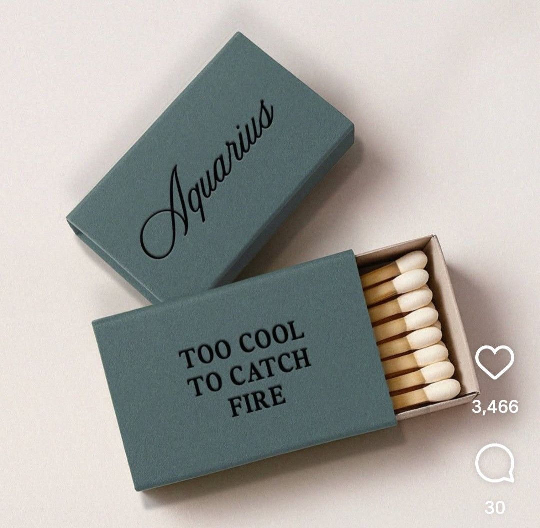 A minimalist matchbox design featuring a teal-blue cardboard box with witty typography and exposed wooden matches. The design combines functional product packaging with playful branding through clever wordplay and a clean, contemporary aesthetic.