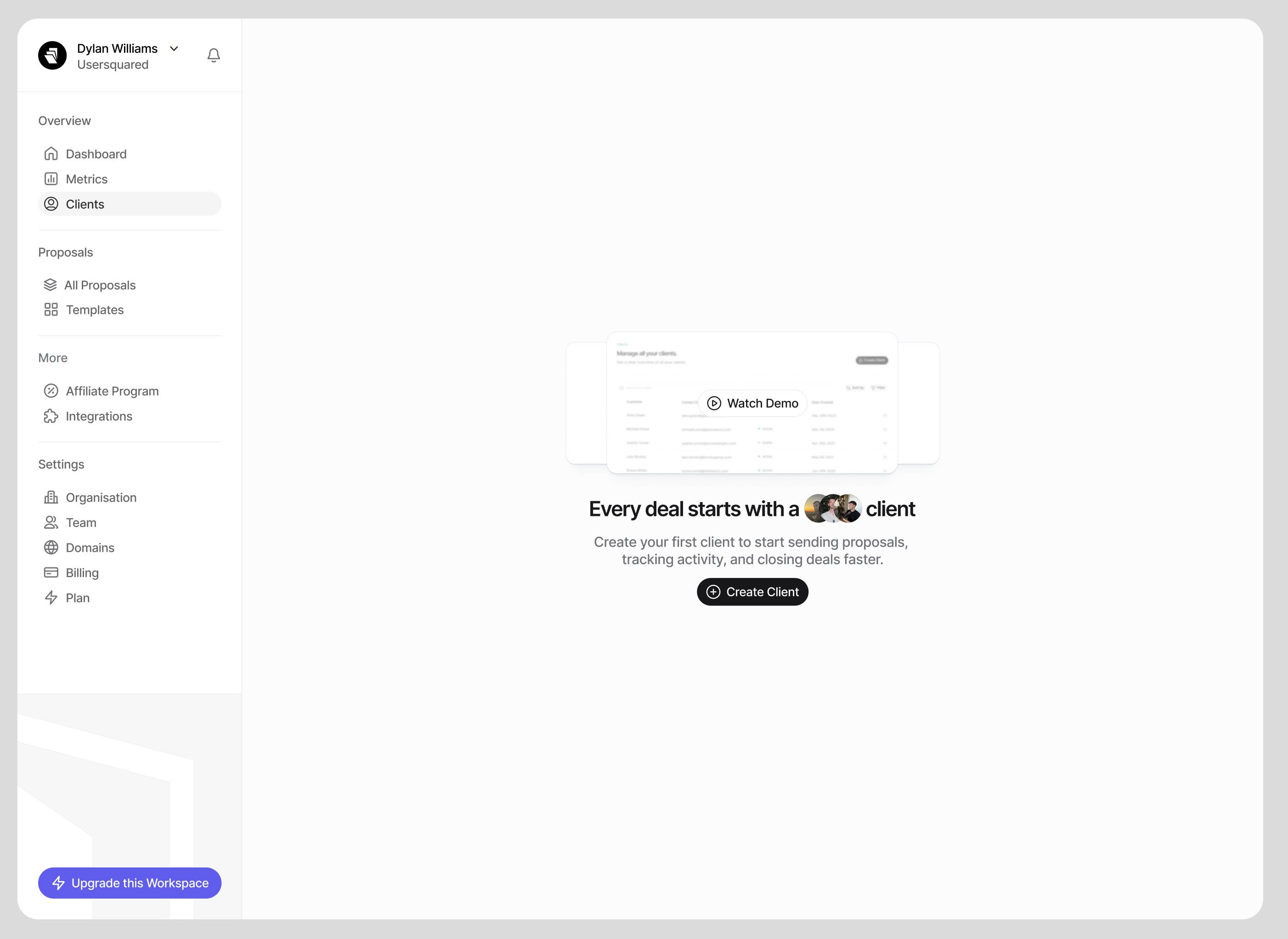 The interface presents a clean, minimalist dashboard design with a light background and clear navigation structure. The visual language is professional and functional, relying on ample white space to organize various features logically.
